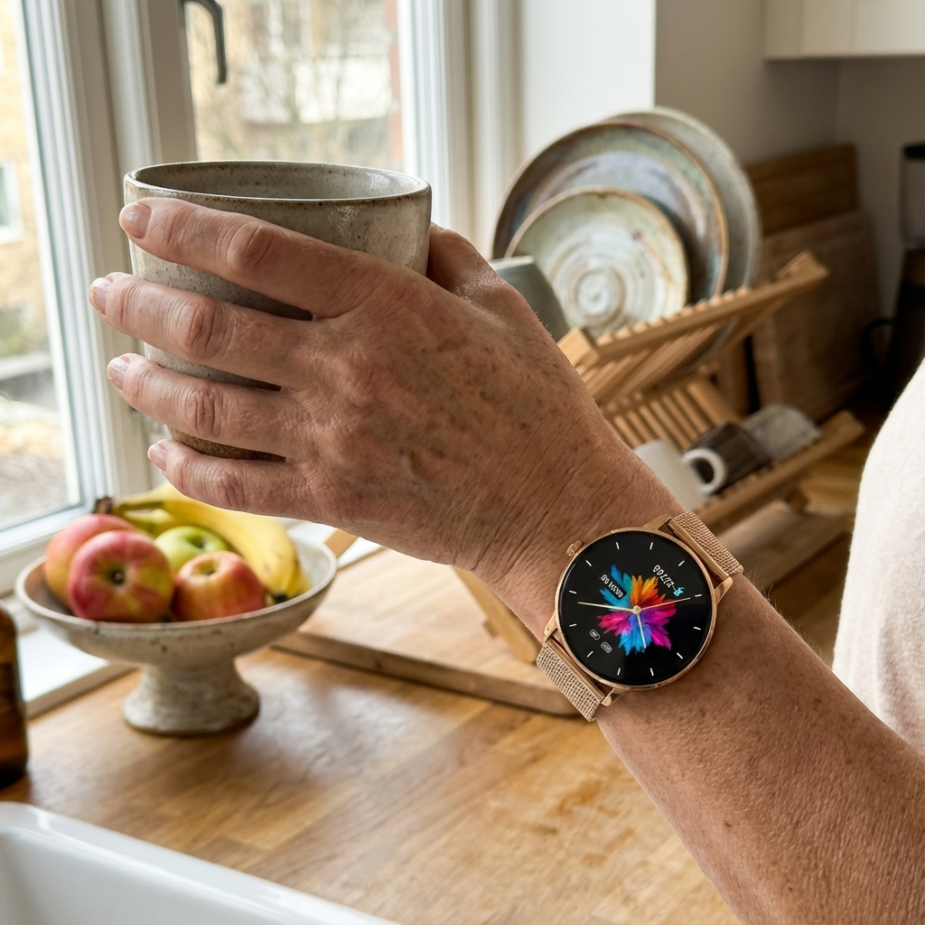 Elegance One är både ett stilrent smycke och ett smart verktyg. Du kan ta emot samtal direkt från handleden, hålla koll på hälsa och träning, byta mellan över 100 urtavlor och ändå bära den som en elegant accessoar en kombination som en vanlig klocka inte kan ge dig.